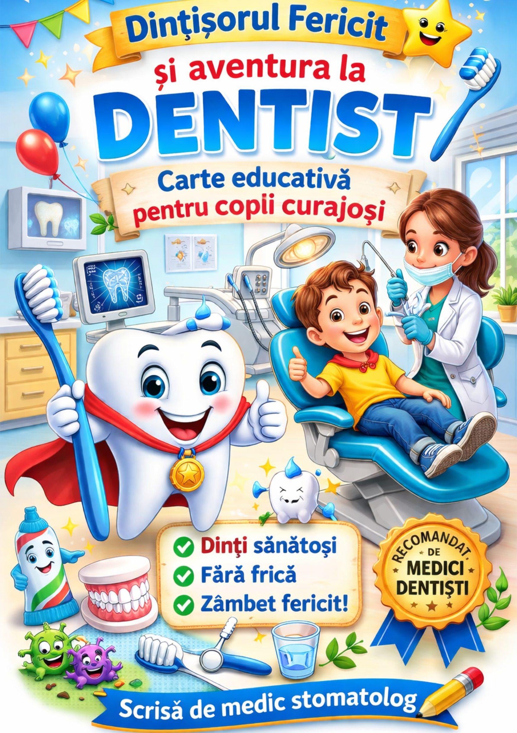 O carte educativă pentru copii care transformă vizita la dentist într-o experiență pozitivă, ușor de înțeles și plină de curaj.